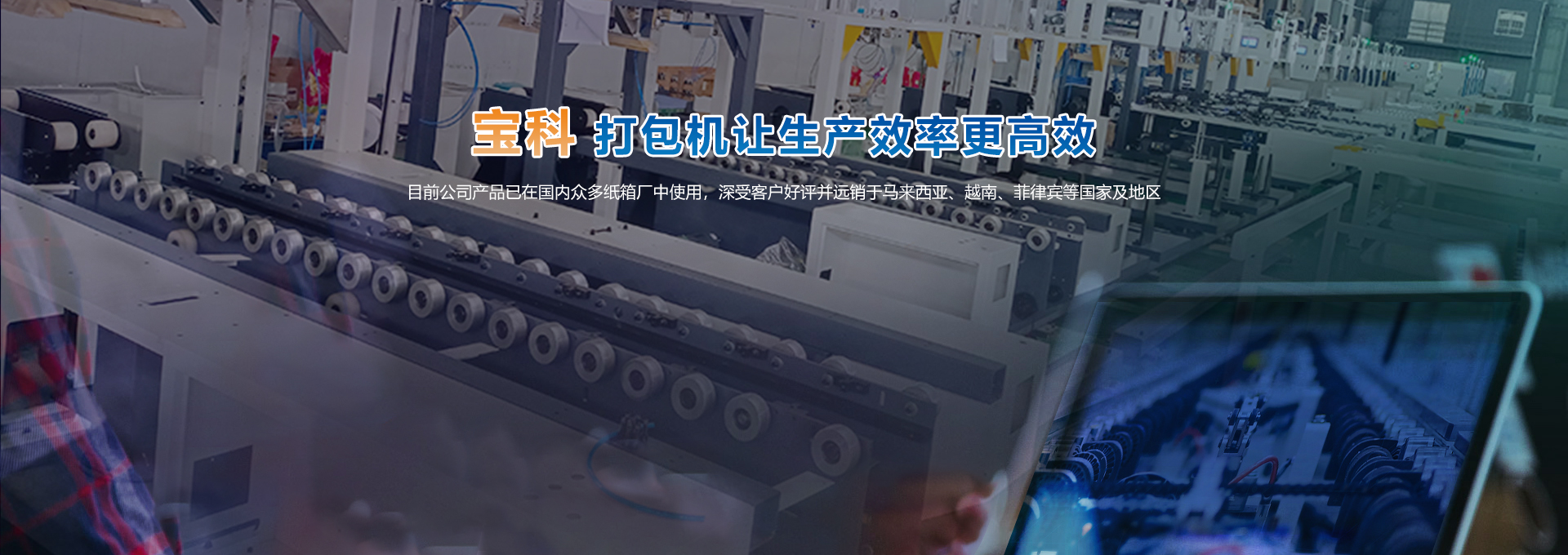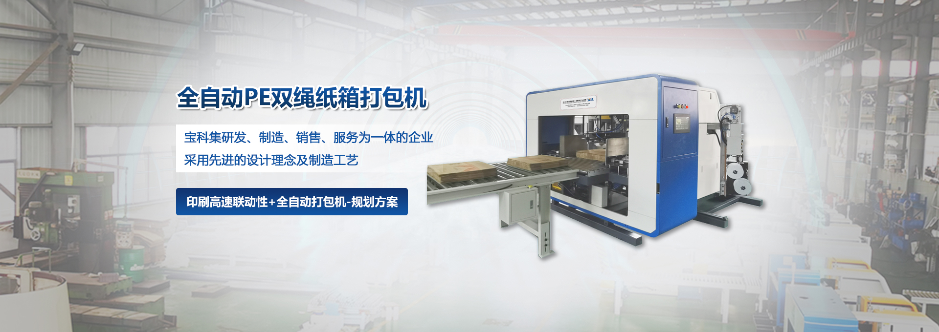 公司采用先进的设计理念及制造工艺,主要产品有:PE绳双道纸箱打包机、PE绳双道纸板打包机等。